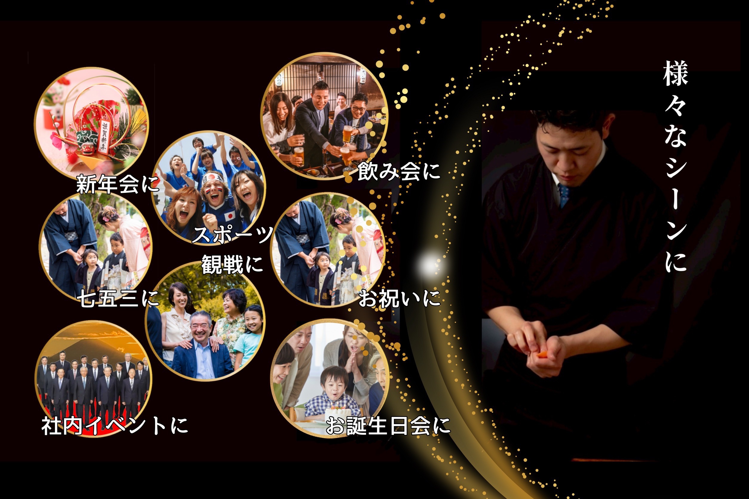 「予約制でスムーズに楽しめ、気兼ねなくお年寄りも参加できました。目の前で握られるエンターテイメント性が高く、記憶に残る時間になりました。」
